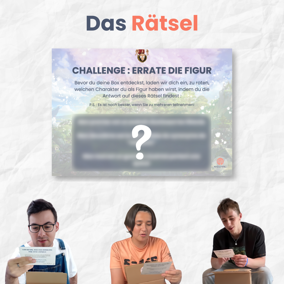 Leider könntest du keine bestimmte Figur oder Lizenz auswählen. Du kannst lediglich angeben, welche Charaktere du nicht erhalten möchtest. Der Sinn der Box besteht darin, ein Unboxing-Erlebnis zu bieten und eine Überraschung zu erleben! Wir verkaufen vor allem ein Gefühl und nicht nur eine Figur. Da wir (äußerst) nett sind, versuchen wir, dich nach deinen Wünschen zu überraschen, wenn wir die entsprechende Figur auf Lager haben. Aber wir können nichts garantieren!